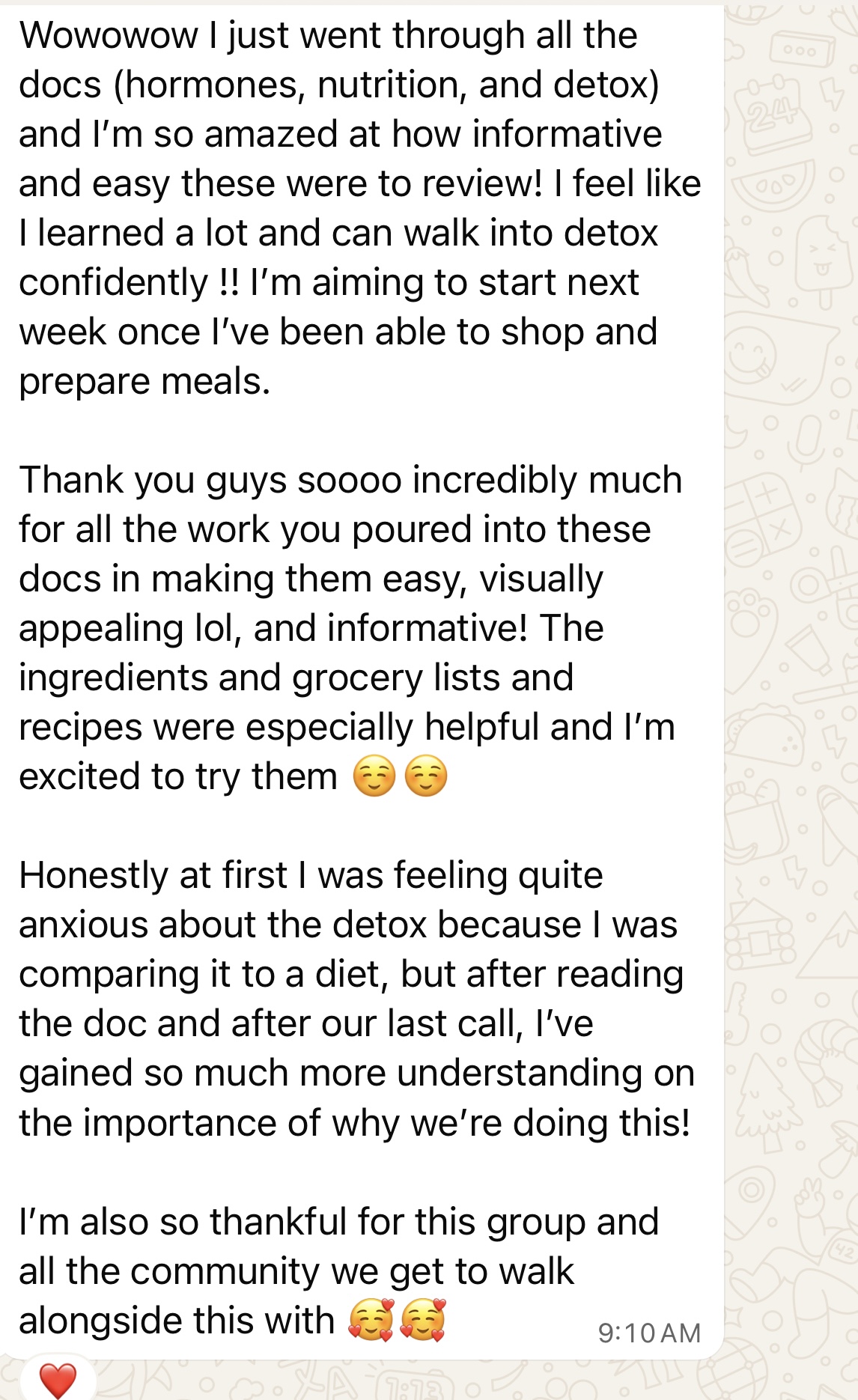 It begins October 14th and runs for 9 weeks. After our first 6 week cohort we wanted to add more value and support for a more sustainable transformation. After your purchase you will get an intake form to complete and then access to the Facebook Group where you can connect, share your questions and testimonies,